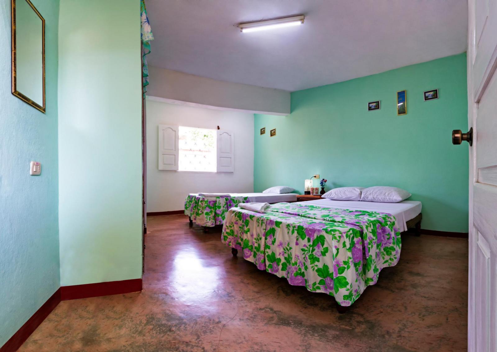 Hostal Maos TRINIDAD. A single room for rent with two double beds (capacity: 4 pax), private bathroom, air conditioning, fan, safe, balcony (exclusive) facing the street and access to the upper terrace.