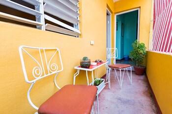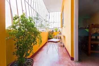 A single room for rent with two double beds (capacity: 4 pax), private bathroom, air conditioning, fan, safe, balcony (exclusive) facing the street and access to the upper terrace. The room is on the first floor and you have to go up the stairs.